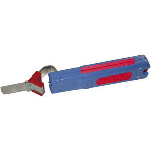 SPELACAVI A MOLLA PER GUAINE ISOLANTI CON 2 LAME Lama in acciaio a profondità variabile. Arco di tenuta del cavo regolabile in due posizioni. Lama posteriore per togliere l'isolamento dei conduttori con sezione mm^2 0,5 a 6. Lunghezza mm 155.